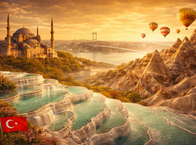 Discover Turkey’s timeless beauty as you journey through Istanbul, Cappadocia, Pamukkale, and Antalya—where history, culture, cuisine, and luxury come together seamlessly.